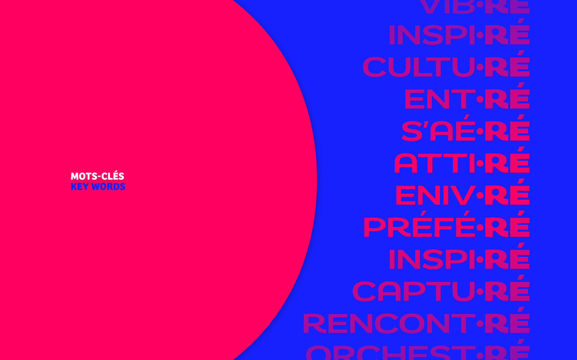 To enrich the graphic territory of •RÉ • Domaine Culturel, we also played with its name to create words linked to the activity of the cultural program, as well as the emotions and sensations it can arouse (CULTU•RÉ, VIB•RÉ, INSPI•RÉ, ORCHEST•RÉ, ENIV•RÉ, ATTI•RÉ…).