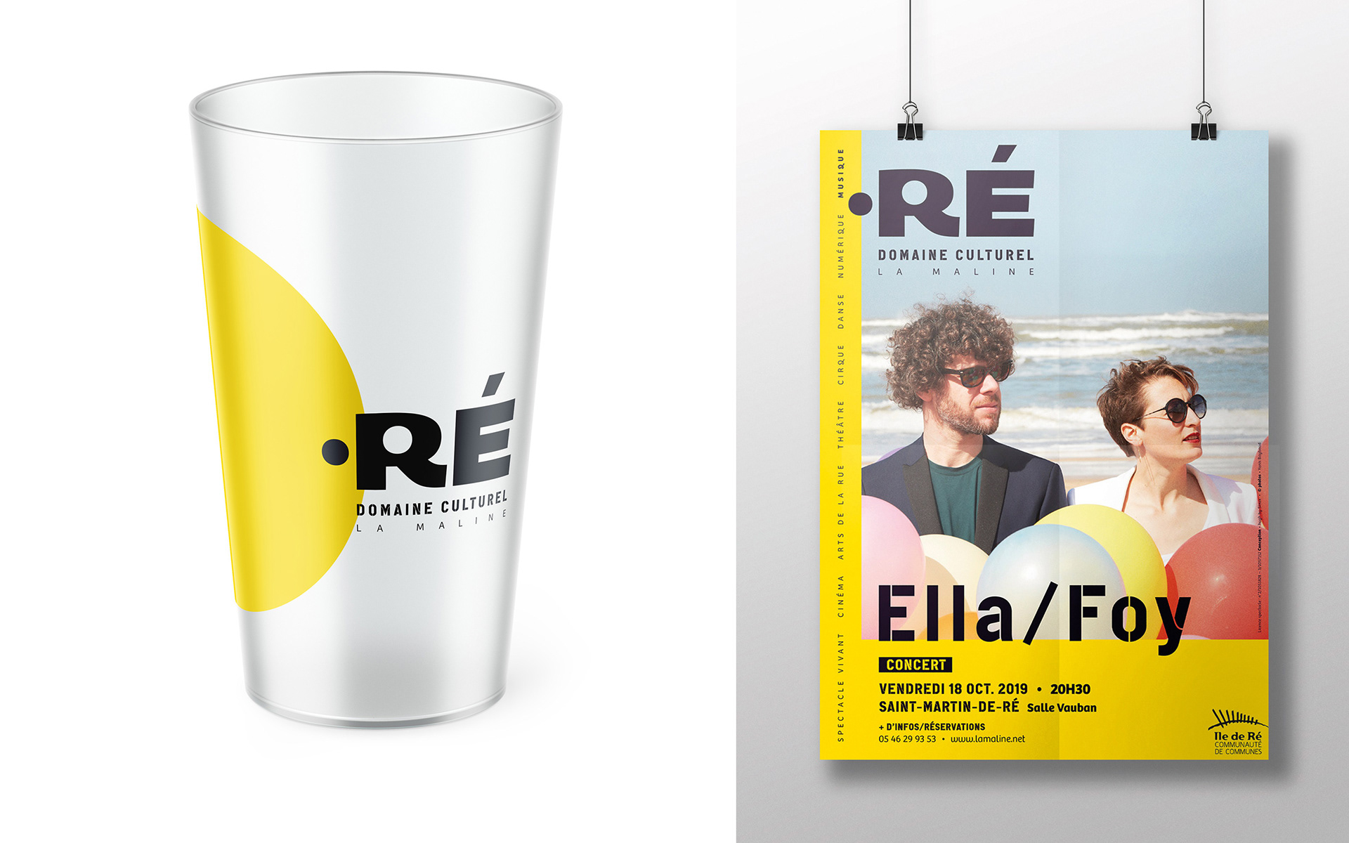 The vision and ambition of the cultural scene from Ré island is affirmed in this identity which bears the name of the territory in capital letters.