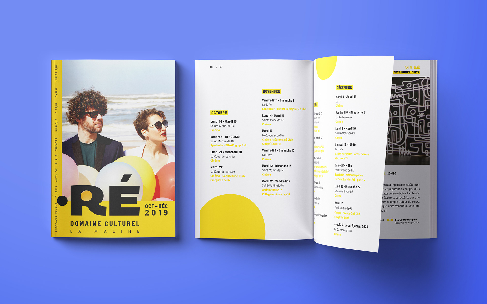 Pour cela, nous avons créé un nom image “•RÉ” qui établit l’offre culturelle tel un domaine. Ce domaine est un clin d’œil aux extensions de site internet (.com, .fr, etc.).
