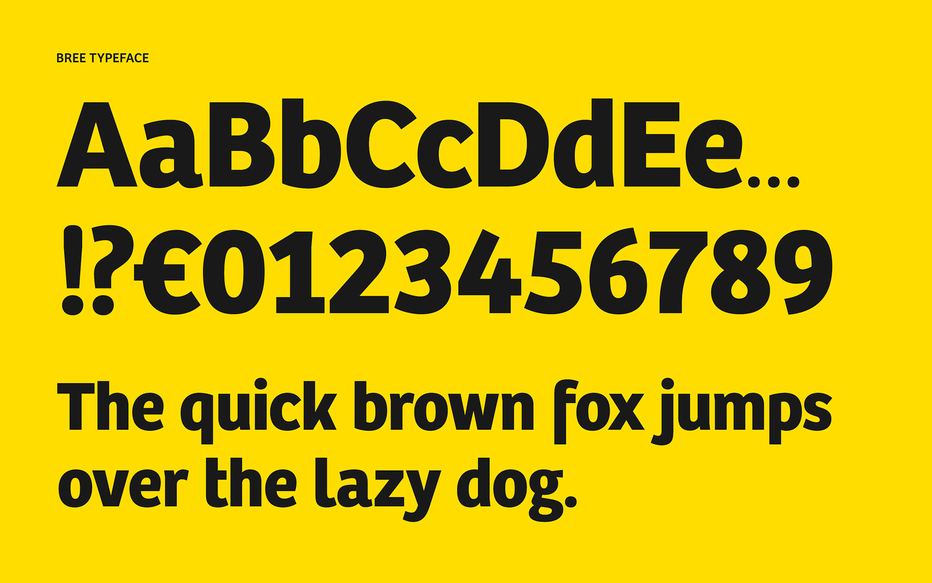 Common texts use the Bree with a round and soft design. Some endings are reminiscent of handwriting, bringing a human aspect. The lightness of this sans-serif typeface contrasts with the Cargo.
